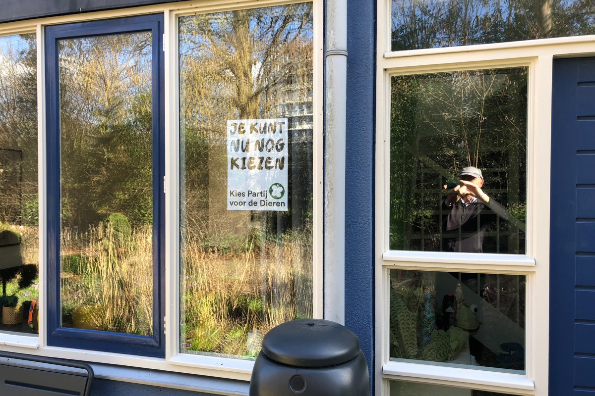 Voor het eerst in mijn leven heb ik een poster van een politieke partij achter het raam gehangen. Meer kleur bekennen kan bijna niet. Ik stel me zo voor dat er straks mensen aan de deur komen, de postbode bijvoorbeeld, de boodschappenbezorger, buren of willekeurige voorbijgangers, die een discussie aan willen gaan. Daar ben ik niet op voorbereid. Voor mezelf weet ik op basis van welke overtuigingen ik kies. Debat is echter niet mijn sterke punt. Als iemand ferm en beargumenteerd een mening of visie te berde brengt, is het voor mij al snel: ‘O ja, daar zit iets in, dat kan ook.’ Tegen dat soort situaties moet ik me verweren, eenvoudig door ze uit de weg te gaan. Het ophangen van zo’n poster is dan geen logische stap.